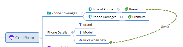 In the mind map, you can add a Pricing marker to a topic, and add a relationship between the Pricing topic and its basis.