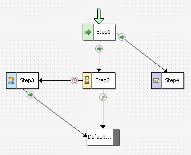 Step1(AutoStep Workflow Step) with a defaultGObranch to theDefaultOutcomestep, which you designate as the first step in the<Start> Workflow Elementelement - A