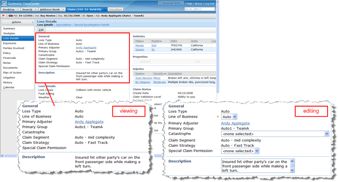 The following is an example of a detail view as it appears both as it is being viewed and as it is being edited: