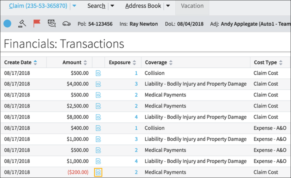 Use links to take users to related or more detailed content. In the following example, the link takes users to a set of detailed information about policyholder Alicia Shirley.