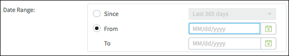 Choice widgets use Radio buttons to select inputs or sets of inputs. In the following screen shot, the From To choice widget is currently selected, making that set of inputs available and disabling the Since input.