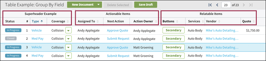 - Tables in InsuranceSuite 10 also include a smart header feature. Use